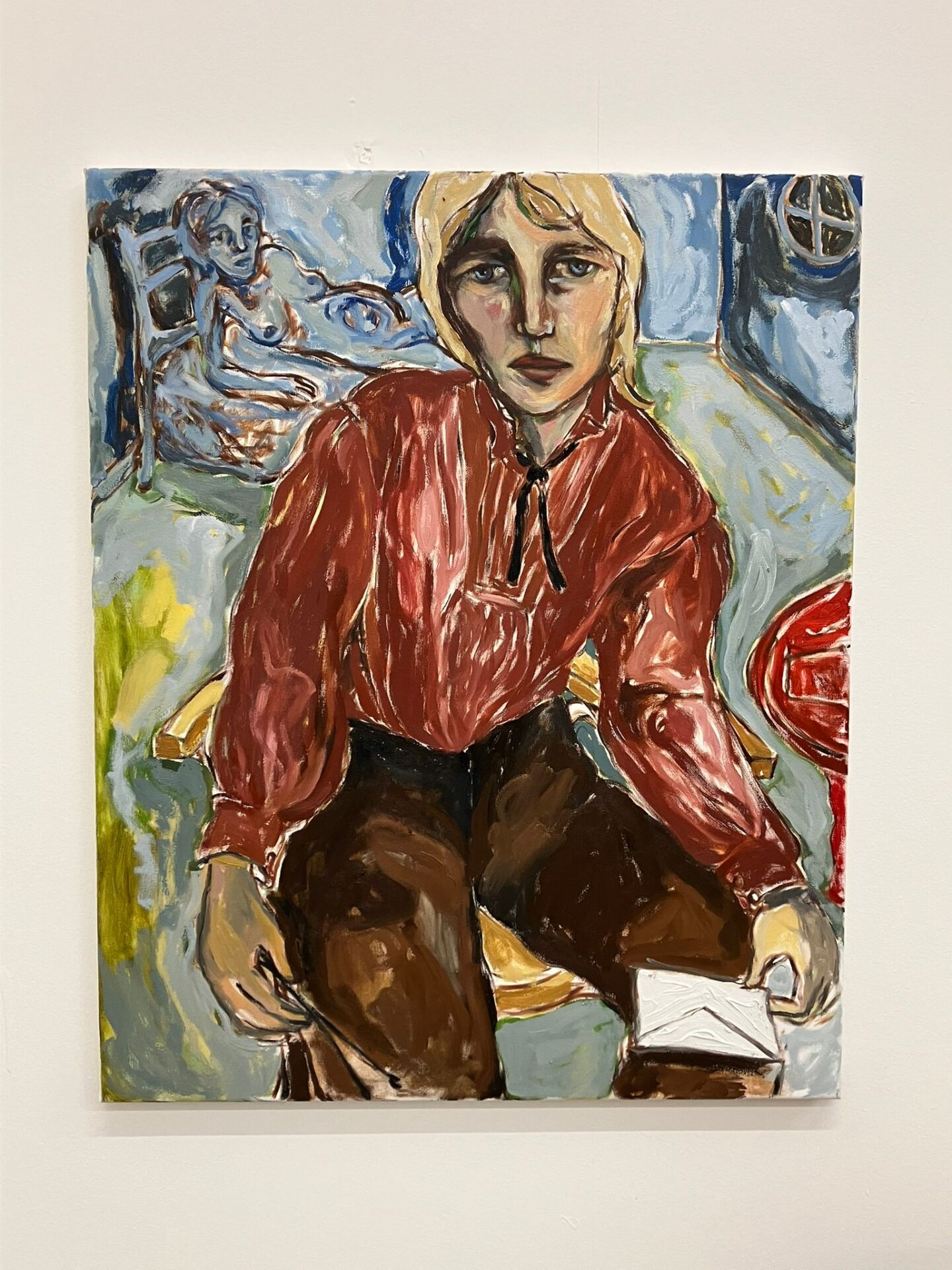 Joline Kwakkenbos (b. 1997, Hilversum, NL) is a Dutch artist known for her expressive self-portraits that explore themes of queerness, femininity, and the human experience. Her work, ranging from free-spirited depictions to contemplations of seduction, societal roles, and vulnerability, employs vibrant colours and subtle symbolism to invite viewers into her world. With a BA in fashion design, Kwakkenbos’ artistic practice fuses painting, experiments with clothing and historical research, as a means of self-reflection while challenging societal norms of femininity and body perception. Since 2024, she has been based in Margate, residing in Tracey Emin’s studios.