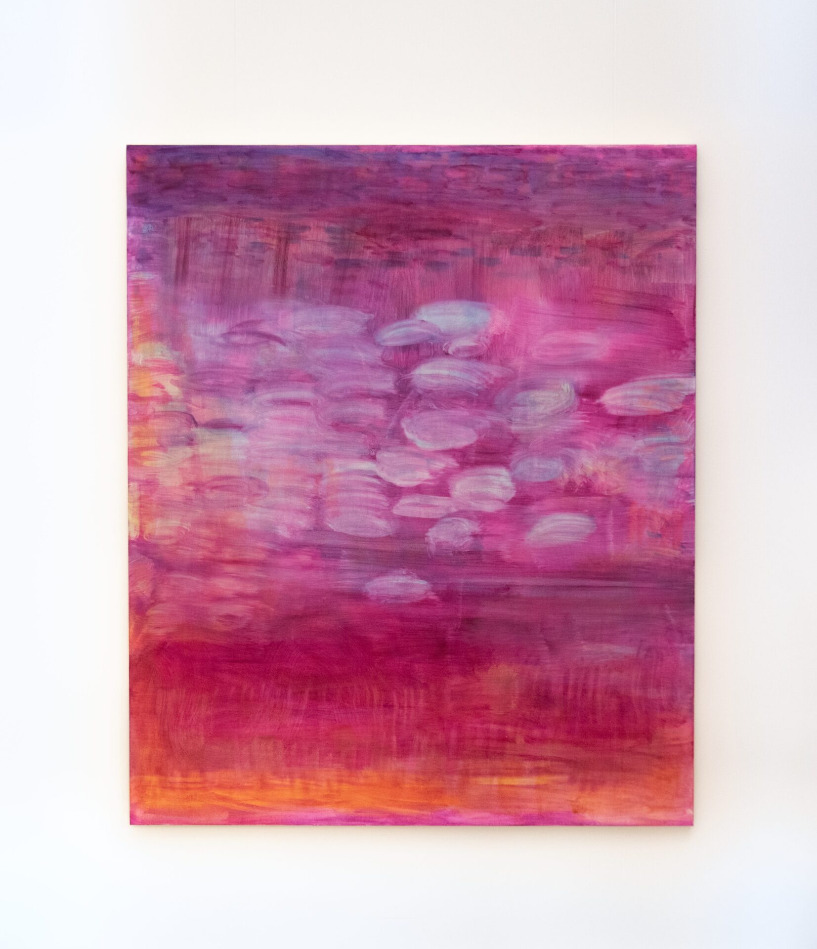 For me, light is more a feeling than a subject. I think of it as something that moves through the painting, rather than something I’m trying to depict literally. I often let bits of the underpainting shine through – little glimmers that keep the work alive and prevent it from feeling overworked. Recently, I’ve been experimenting with different kinds of light, both natural and synthetic. I’ve been using fluorescent paints to explore how they shift the energy of a piece. My fascination with light comes largely from music and performance. I’ve attended live gigs for as long as I can remember, and I think I’m trying to capture that feeling – the sense of a place or moment that has made me feel alive, or that has moved me.