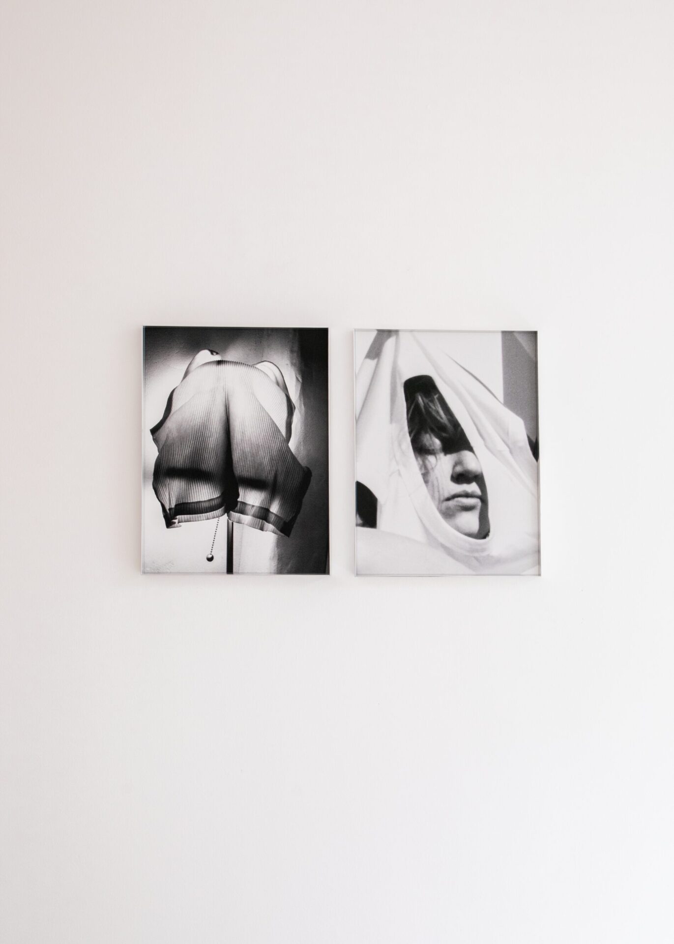 Loes de Boer’s (b. 1999, NL) black-and-white still-life photographs are sequences of self-portraits, mirrors of her own life and the objects that surround or transform her.