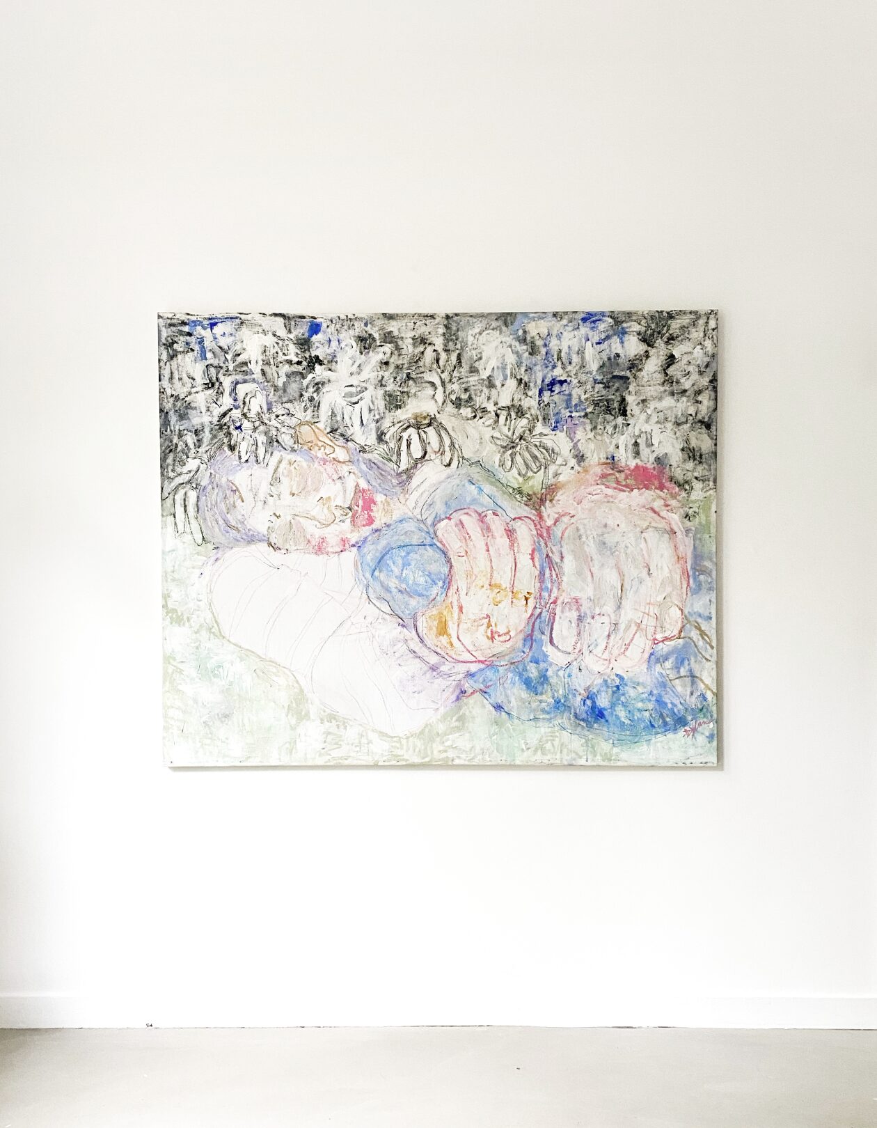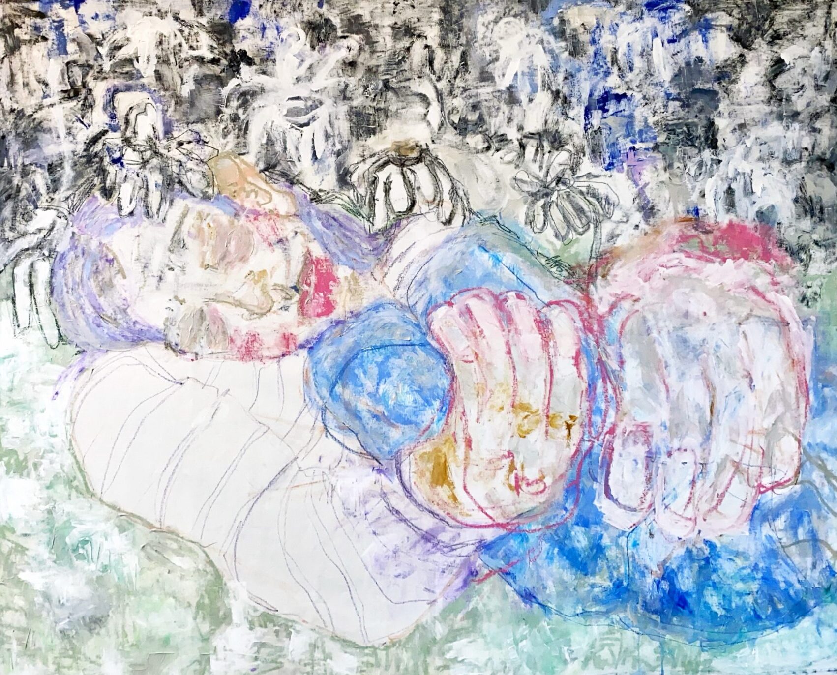 Acrylic, pastel, China marker on canvas