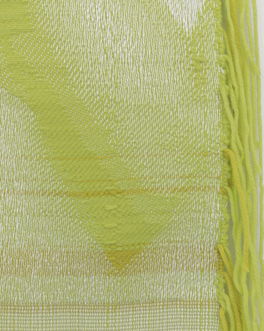Handwoven cotton, acrylic, wool, silk, and tinsel