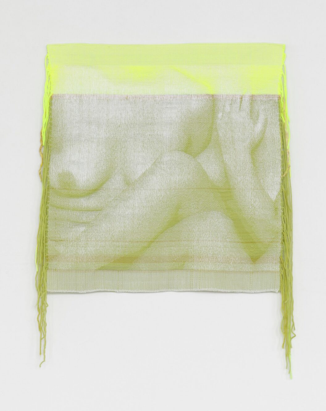 Los Angeles-based artist Mia Weiner creates hand woven tapestries of intimate scenes on themes of identity, gender and the psychology of human relationships. Responding to mythology and traditions in portraiture, Weiner’s photography based compositions put the body center stage exploring how figurative representation can hold power and agency. Weiner was awarded the V&A Parasol Prize by the Victoria & Albert Museum and Parasol Foundation last May ‘24.