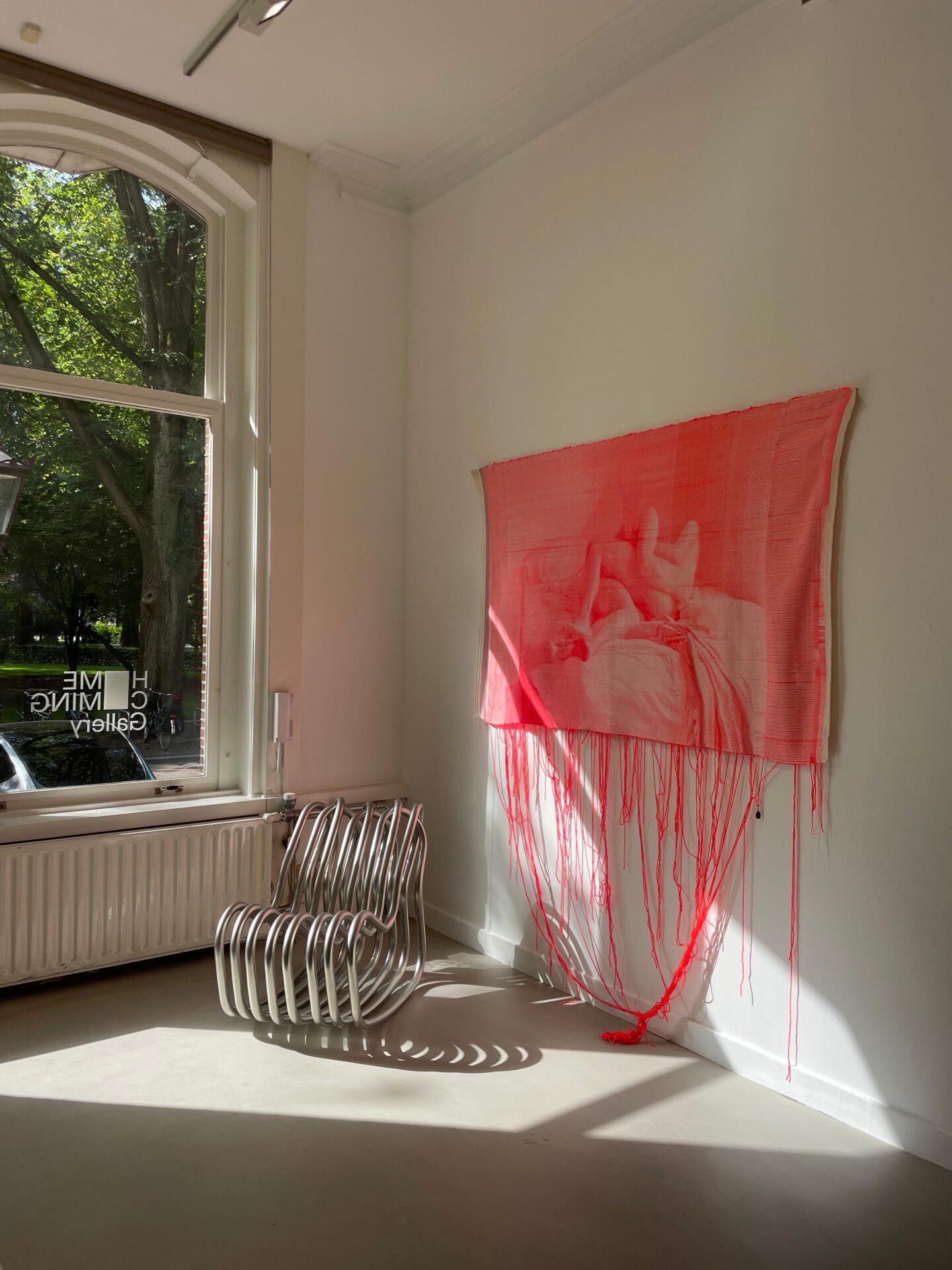 Where Mia Weiner’s photography-based tapestries focus on the subject of agency of the female body, from an art historian, modern societal and personal viewpoint, Johnny Mae Hauser’s latest series is a raw exploration of emotions experienced through connecting bodies, lineage and relationships – a dialogue of meta-reflections and pure unprocessed expressions.